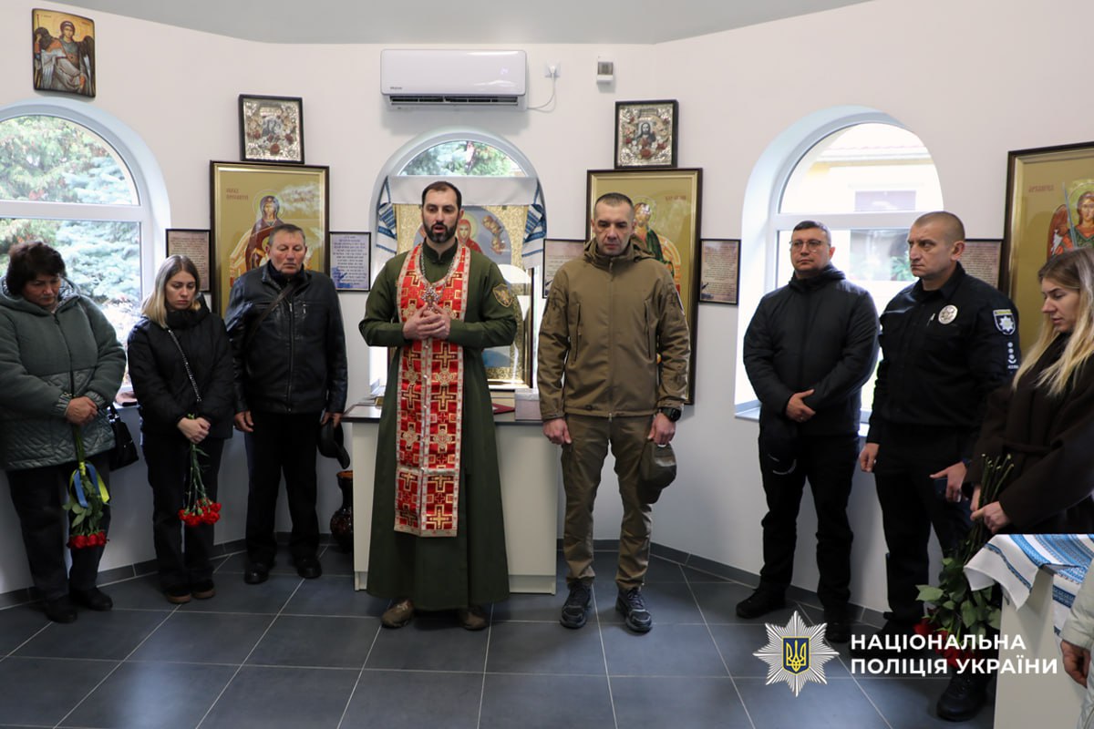 В каплиці Покрови Пресвятої Богородиці – збудованої на честь та пам'ять полеглих поліцейських чиї життя забрала російська війна отець Назарій, колеги, рідні та близькі загиблих поліцейських провели спільний молебень.