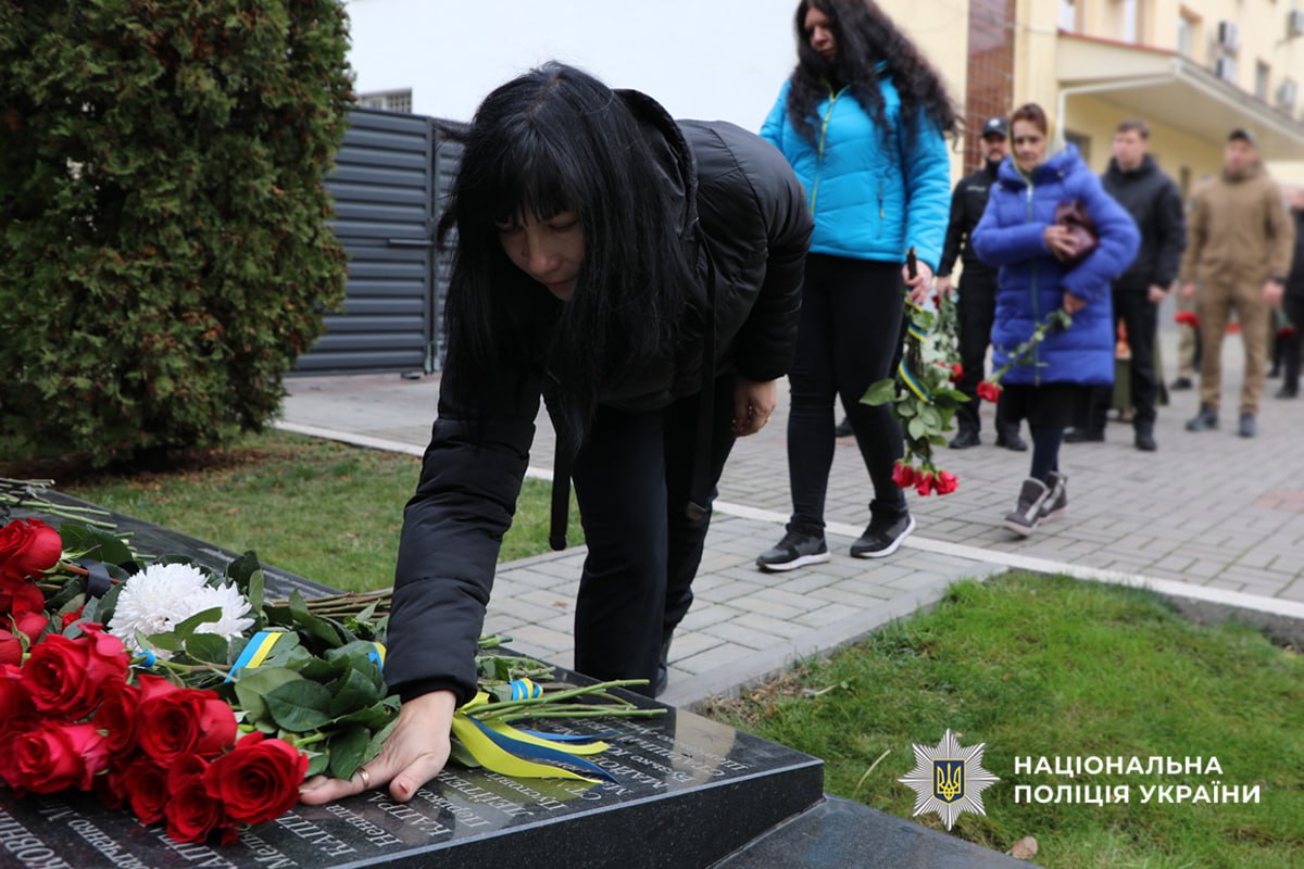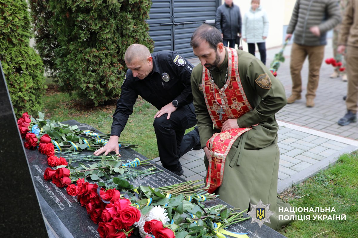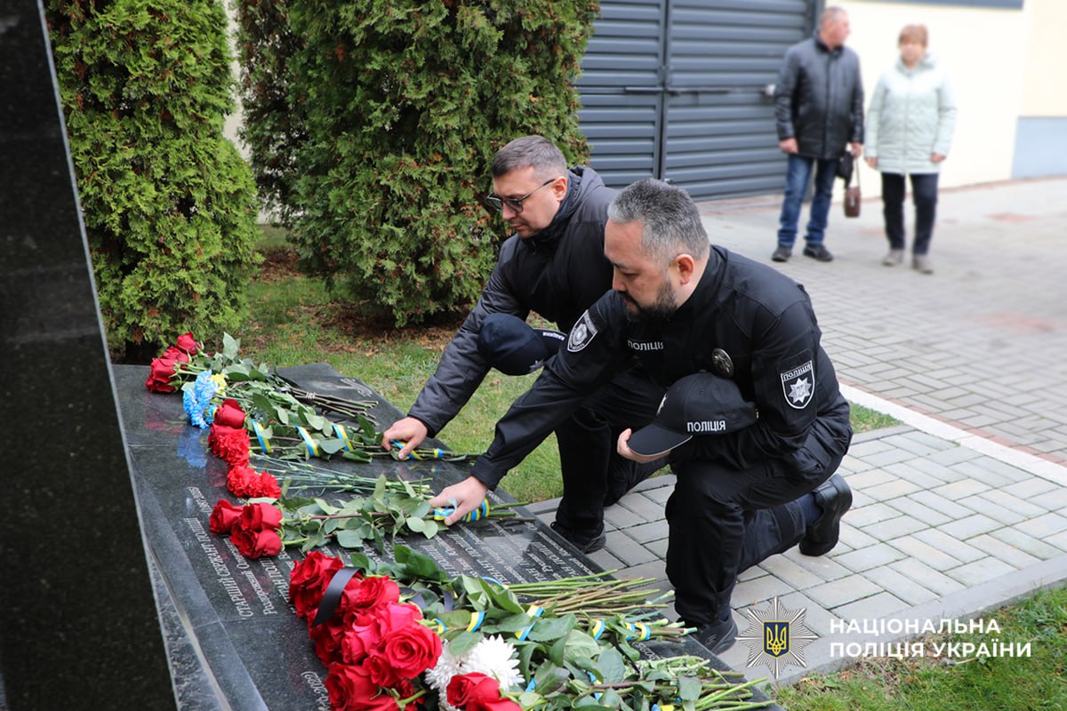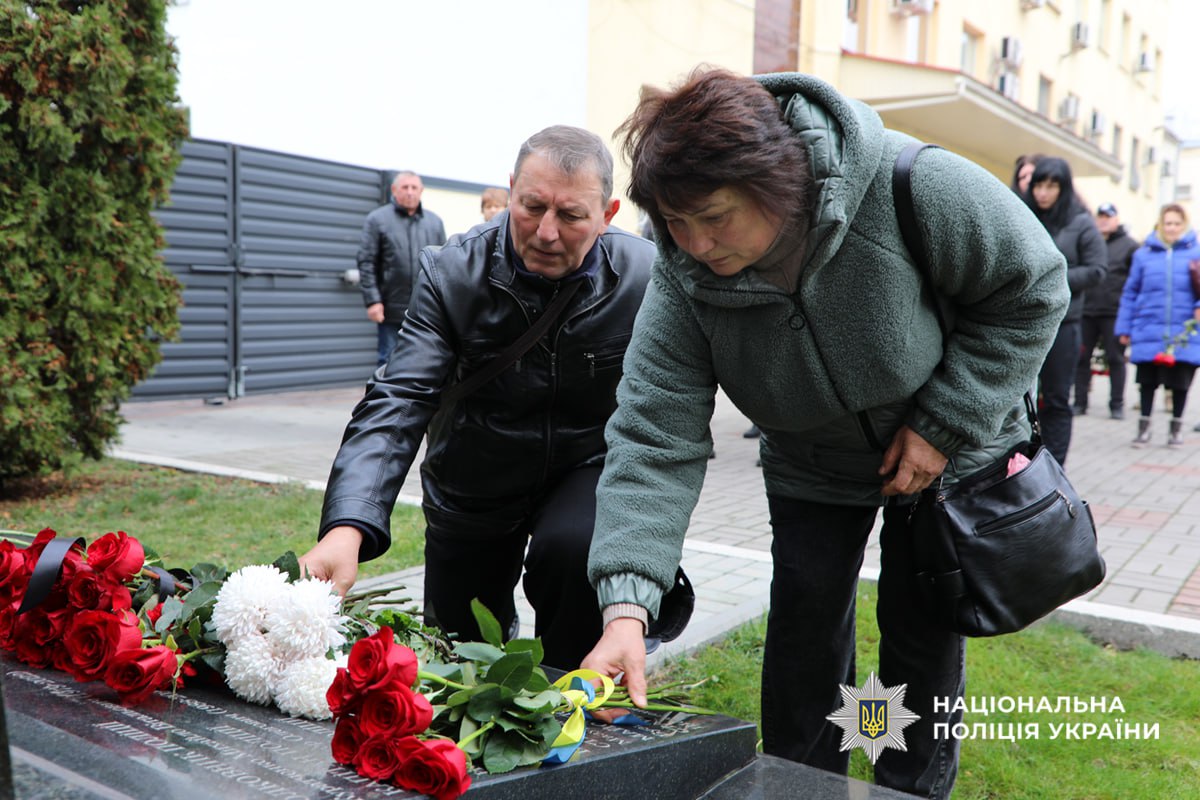 Памʼятний захід закінчили покладанням квітів до пам’ятного знаку, де в граніті навіки закарбовані імена загиблих поліцейських.
