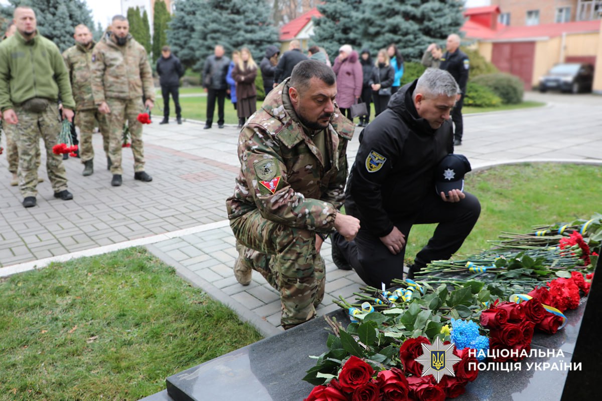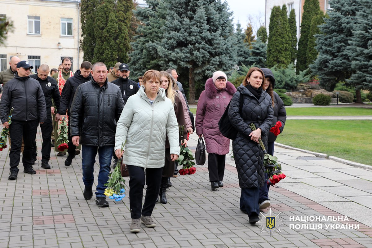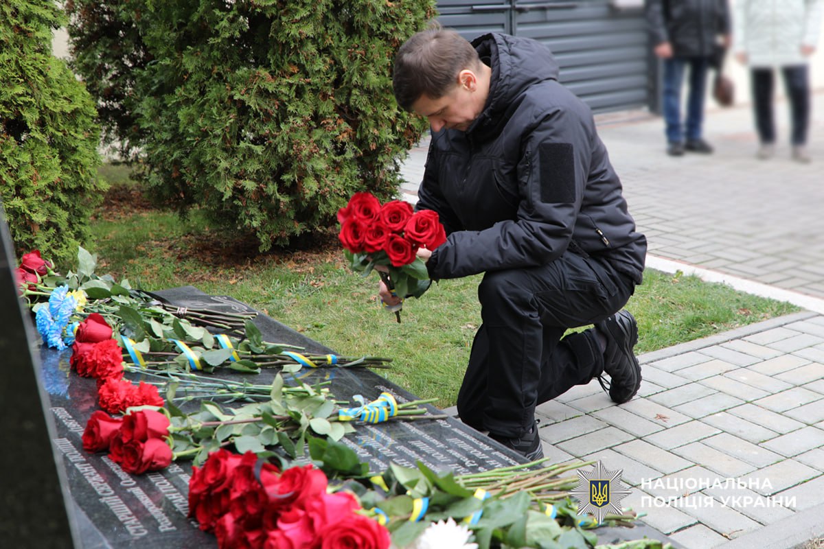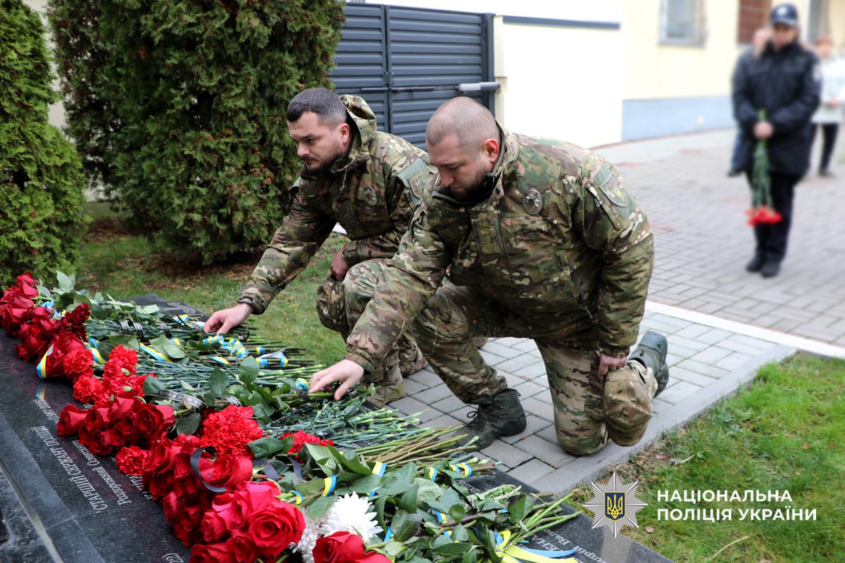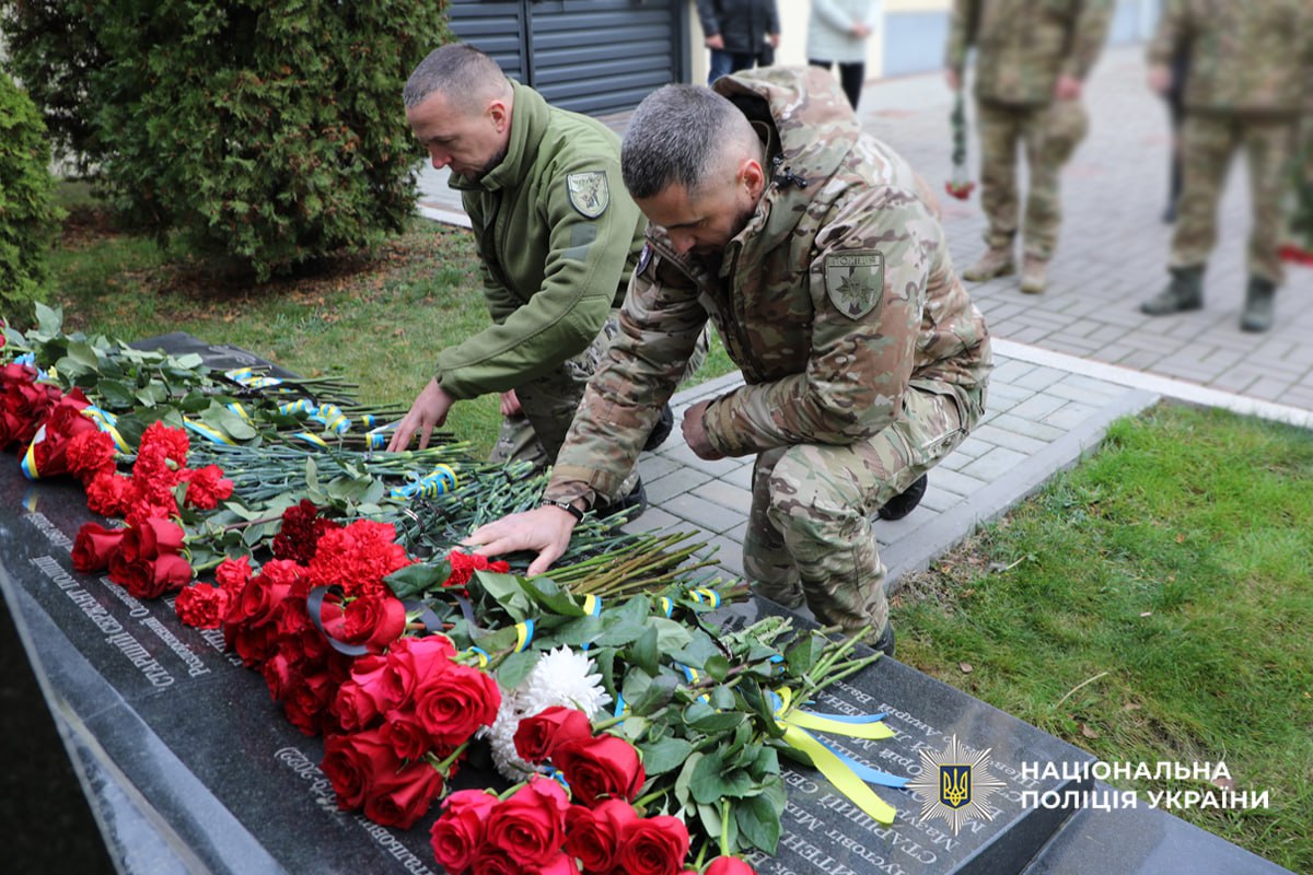 Памʼятний захід закінчили покладанням квітів до пам’ятного знаку, де в граніті навіки закарбовані імена загиблих поліцейських.