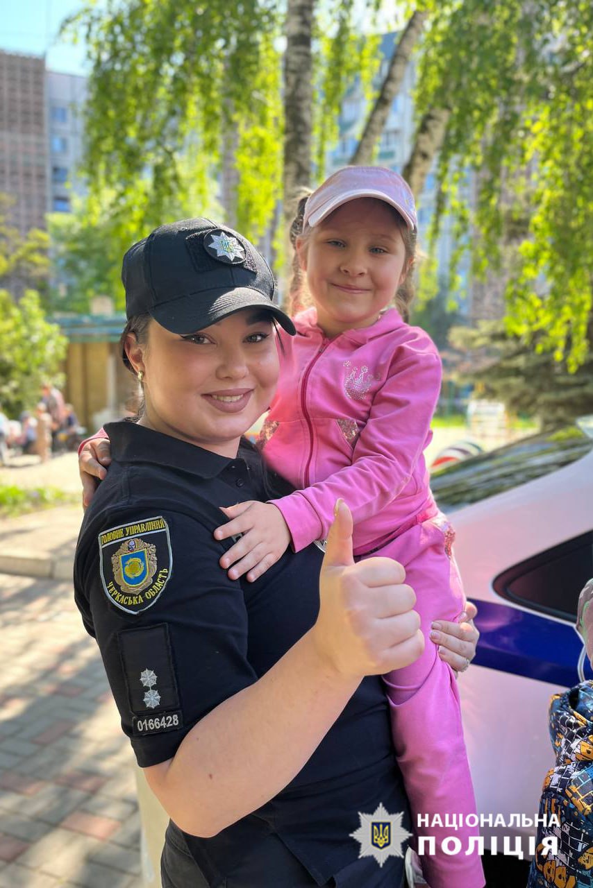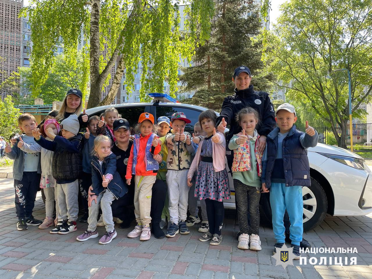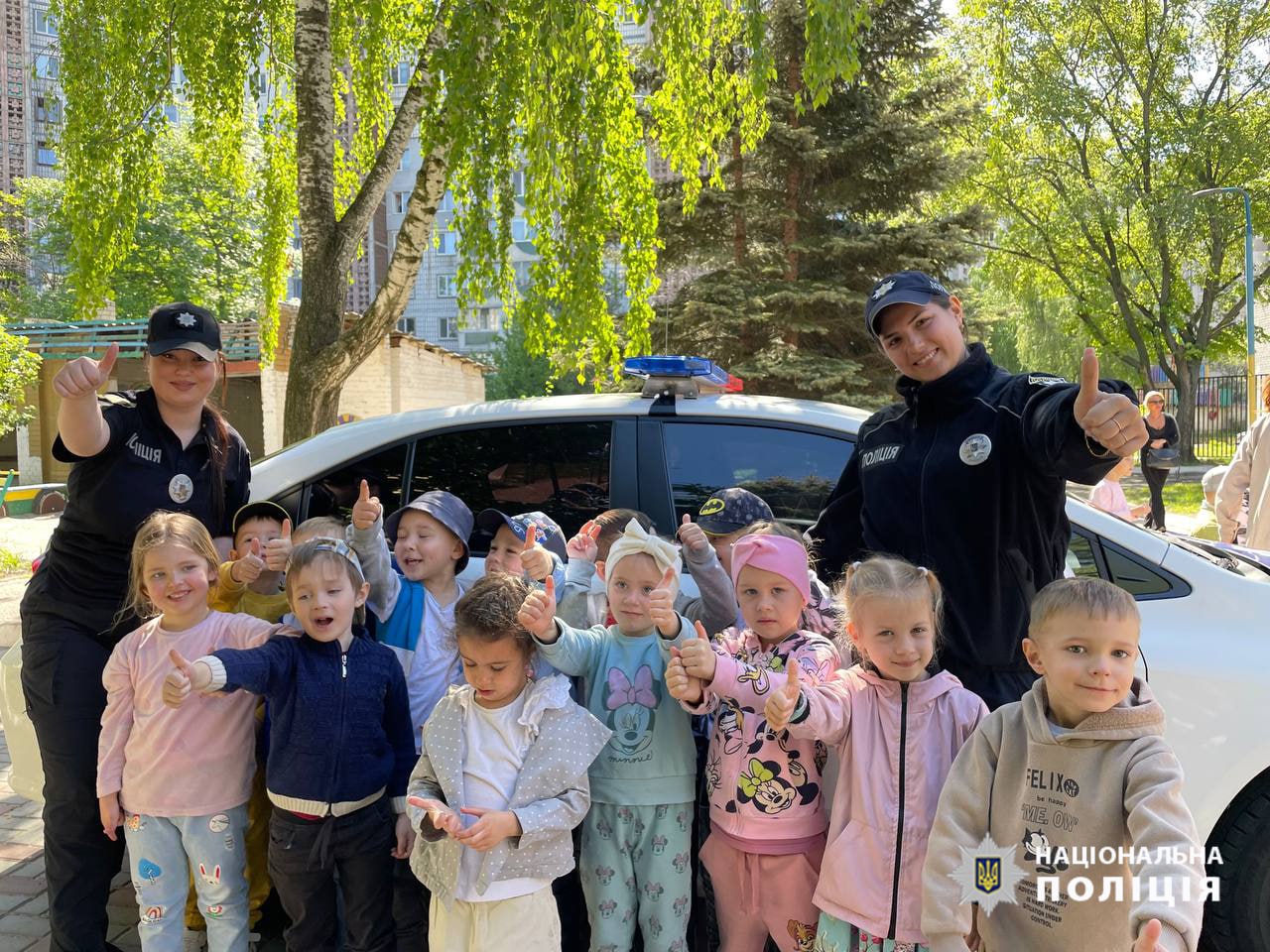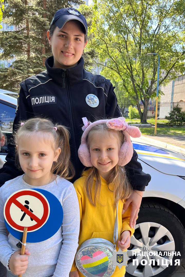 Також поліцейські разом з малечею в ігровій формі моделювали різні ситуації, які можуть статися на дорозі