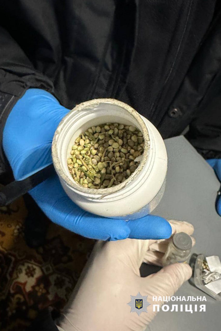 За місцем проживання фігуранта кримінального провадження оперативники та слідчі згідно з ухвалою суду провели обшук. У помешканні вилучили сухі й подрібнені рослини, а також насіння ймовірно конопель. Загальна вага таких «запасів» склала понад один кілограм.